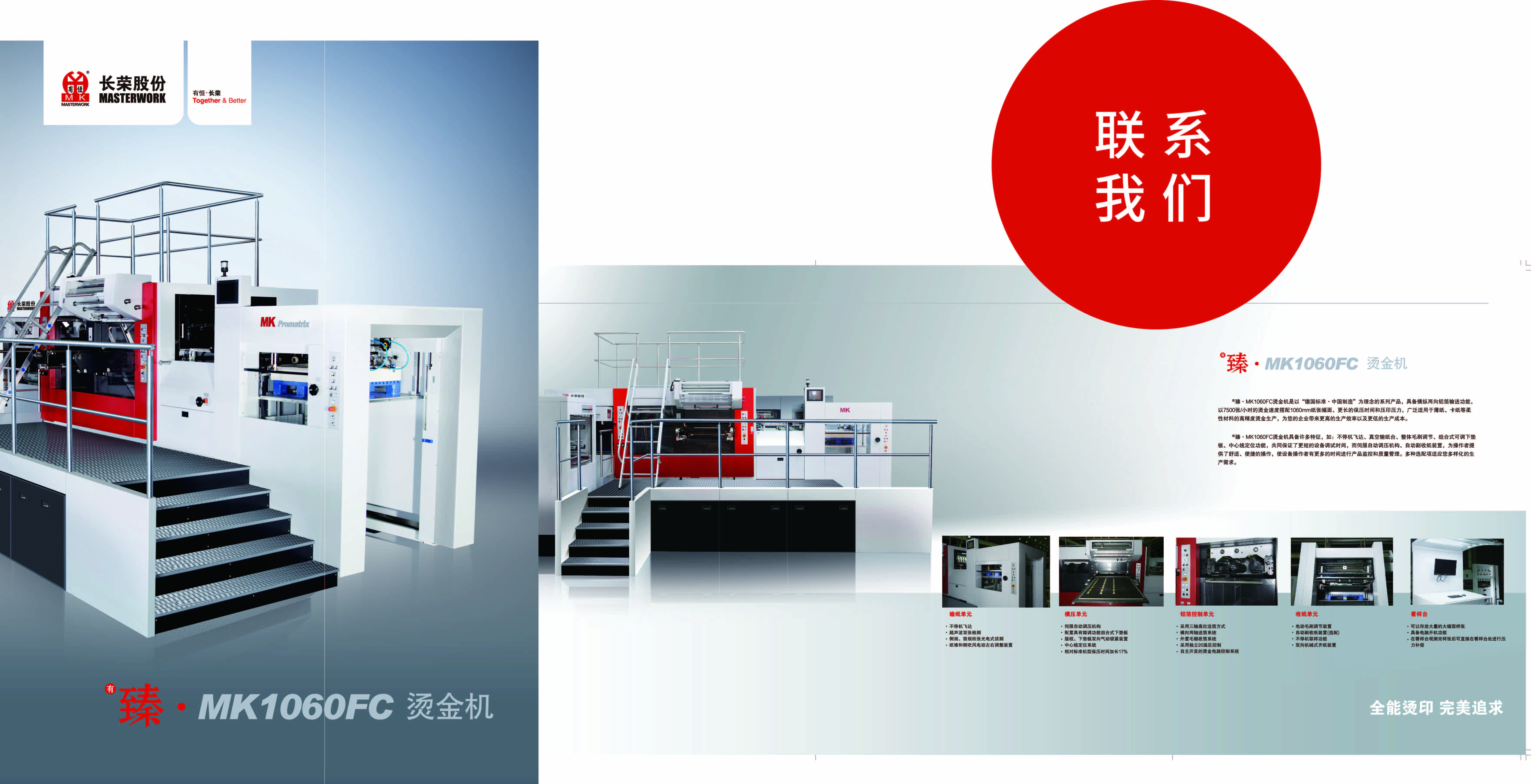 有臻?MK1060FC 燙金機具備許多特征,如: 不停機飛達、真空輸紙臺、整體毛刷調節、組合式可調下墊板、中心線定位功能,共同保證了更短的設備調試時間,而伺服自動調壓機構、自動副收紙裝置,為操作者提供了舒適、便捷的操作,使設備操作者有更多的時間進行產品監控和質量管理。多種選配項適應您多樣化的生產需求。